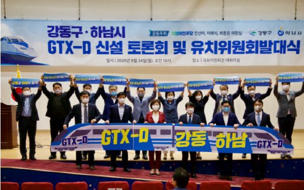 강동구는 2019년 10월 국토교통부 대도시권광역교통위원회가 ‘광역교통비전 2030’에서 ‘서부권 신규 노선 검토’를 밝힌 이후, 대규모 재건축, 택지개발, 업무단지조성 등에 따른 인구 증가와 폭증하는 광역교통난을 해소할 획기적인 대안이 될 GTX-D노선의 강동구 유치를 위해 적극 힘쓰고 있다.