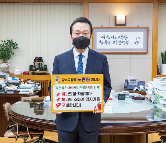 노 구청장은 이날 오후 구청 집무실에서 주택용 소방시설인 소화기와 화재감지기 설치의 필요성을 알리며, 화재 예방을 위해 각 가정과 차량에 소방시설을 갖춰야 한다고 강조했다.