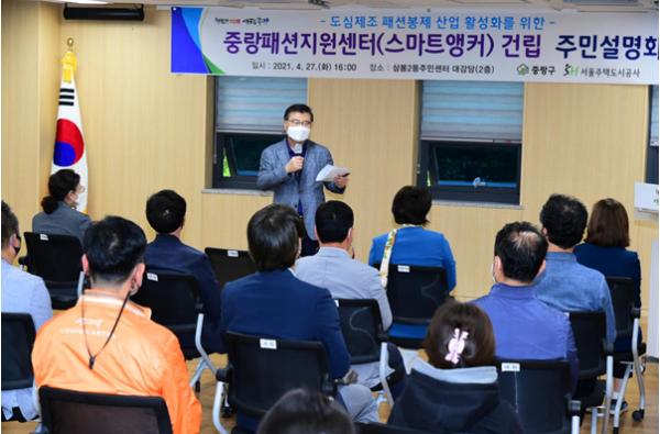 [한국쇼핑몰뉴스, 최영진기자] 중랑구는 27일 오후 상봉2동주민센터에서 중랑패션지원센터(스마트앵커) 건립 주민설명회를 갖고 주민들의 의견을 청취하는 시간을 가졌다.