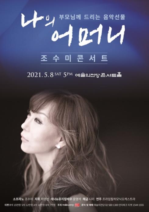 조수미 측 관계자는 "어머니에 대한 특별하고 애틋한 마음과 세상 모든 어머니에게 존경과 찬사를 담아 지치고 상처받은 마음을 위로할 수 있는 클래식, 가요, 크로스오버 등 여러 장르의 곡들로 공연을 준비했다"고 말했다.