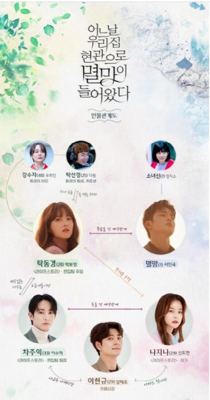 오는 5월 10일 밤 9시 첫 방송 예정인 tvN 새 월화드라마 ‘어느 날 우리 집 현관으로 멸망이 들어왔다’(이하 ‘멸망’)는 사라지는 모든 것들의 이유가 되는 존재 ‘멸망’(서인국 분)과 사라지지 않기 위해 목숨을 건 계약을 한 인간 ‘동경’(박보영 분)의 아슬아슬한 목숨담보 판타지 로맨스. ‘뷰티 인사이드’로 섬세한 필력을 인정받은 임메아리 작가와 ‘(아는 건 별로 없지만) 가족입니다’로 따스한 웃음을 선사한 권영일 감독의 의기투합으로 기대를 모은다.