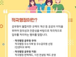 이에 ▲적극행정 전담부서 지정 및 운영과 교육을 위한 적극행정 추진체계 정비, ▲적극행정 우수공무원 선발과 인센티브 부여 등 적극행정 평가·보상, ▲실무자 의사결정 부담 완화, 적극행정 면책제도, 사전컨설팅 등 적극행정 공무원 보호·지원, ▲소극행정 예방시스템 운영과 엄정 조치를 위한 소극행정 예방을 4대 추진방향으로 선정했다.