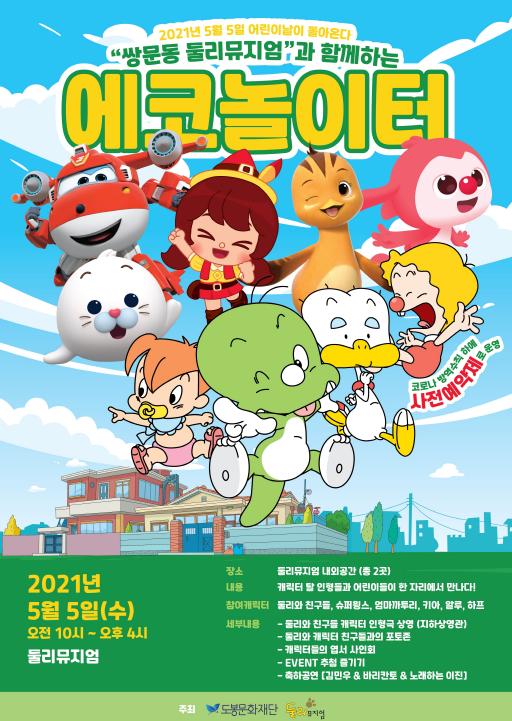 [한국쇼핑몰뉴스, 최영진기자] 도봉구 둘리뮤지엄은 오는 5월 5일 도봉구의 선도사업인 '친환경, 지속가능성'을 주제로 다양한 국내 캐릭터와 함께하는 온 오프라인 어린이날 행사 '에코 놀이터'를 개최한다.