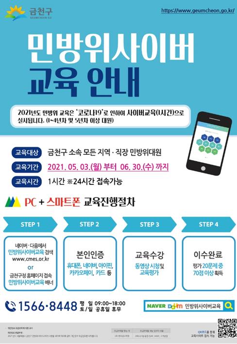 [한국쇼핑몰뉴스, 최영진기자] 금천구는 2021년 민방위 교육훈련을 비대면인 온라인 사이버교육으로 전환하여 실시한다고 밝혔다.