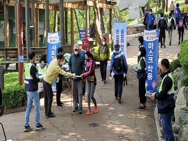 이에 구는 5일 광진구 재난극복 민간협의회와 구청 직원들이 함께 나들이객이 몰리는 어린이대공원 정문, 후문, 구의문과 아차산 입구 등 4개소에서 방역수칙 준수 캠페인을 펼쳤다.