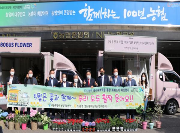 특히 화훼농가를 돕기 위해 농협중앙회서울지역본부와 지역농협인 영동농협, 송파농협, 남서울농협, 강서농협, 경서농협에서 ‘꽃소비 촉진 행사’ 장소로 11개 지점을 무상 제공했다.