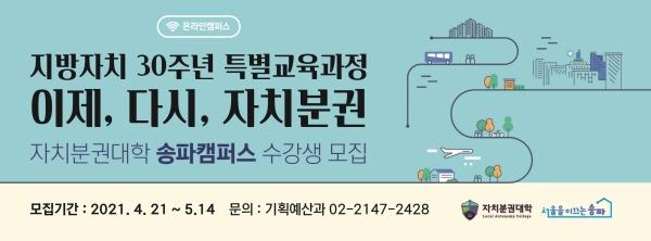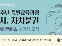 [한국쇼핑몰뉴스, 최영진기자] 송파구가 지방자치 부활 30주년과 함께 지방자치 2.0시대를 맞아 지역리더 양성을 위한 '자치분권대학 온라인 캠퍼스'를 개설한다.