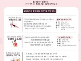 프로그램은 주민의 건강과 행복, 소속감 강화를 도모할 수 있는 내용으로 내 신체를 돌보는 ‘몸챙김’, 나의 감정을 돌보는 ‘마음챙김’, 공동체 구성을 위한 ‘우리챙김’ 등 세 가지로 구성됐다.