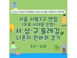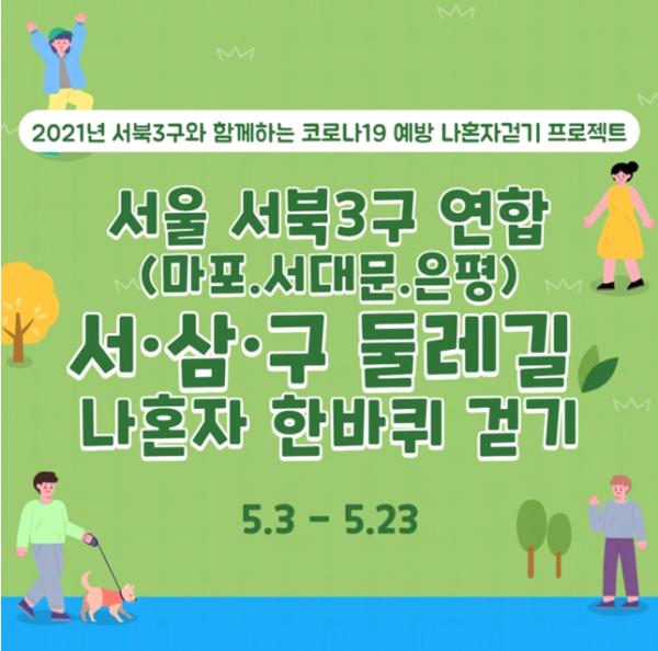 서울 서북3구(은평·마포·서대문) 연합 2021년「서·삼·구 둘레길 나혼자 한바퀴 걷기」 걷기 챌린지를 기획하였으며, 참여 방법은 스마트폰에서 ‘워크온’ 어플 설치 후, 커뮤니티 모드에서 ‘은평구 걷기동아리’ 커뮤니티에 가입하고, 챌린지 모드에서 서울 서북3구 연합(은평·마포·서대문) 「서·삼·구 둘레길 나혼자 한바퀴 걷기」 참여하기를 누르고 걷기 코스에 따라 둘레길을 걸으면 된다.