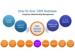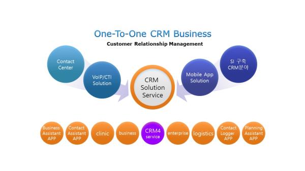 CRM서비스는 기업의 고객관계관리 업무에 맞게 고객관리, 상담관리, 주문관리, AS관리, 영업관리 등 고객과의 효과적인 커뮤니케이션 지원을 위한 서비스로 기업용/병의원용/대학교용/자동차판매사용 등 business domain 방식 및 사무실형, 콜센터형 등의 Business Activity에 따른 다양한 방식으로 서비스를 제공한다.