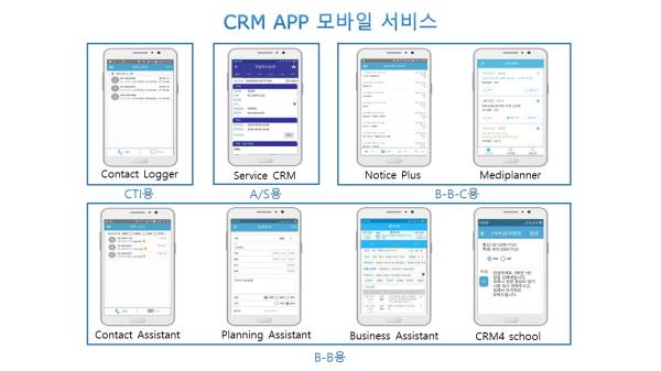 또한 Mobile시대에 맞춰 금년부터는 CRMApp을 개발하여 모바일 서비스도 제공하고 있다. 모바일 버전에서는 PC에서 관리하던 CTI/CRM 서비스를 휴대폰과 호환되게 하여 A/S기사나 영업담당자 및 관리자들이 외부에서도 실시간으로 유용하게 활용할 수 있도록 했다. 또한 휴대폰+PC를 이용한 재택근무 기능도 지원한다.