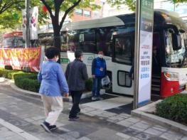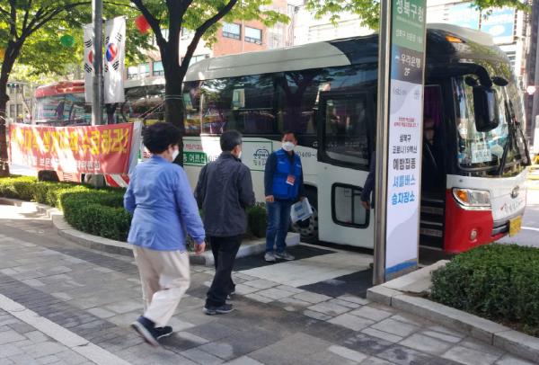 75세 이상 성북구민은 사전에 예약한 백신접종 날짜에 동별 승차장소에서 버스 탑승, 접종센터로 이동한다.