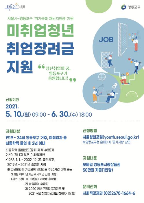 영등포구에 거주하는 만19세에서 34세 청년으로서, 1986~2002년 출생자 중 2019~2021년 졸업한 고용보험 미가입자가 지원 대상이다.