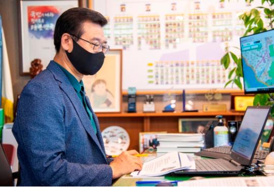 [한국쇼핑몰뉴스, 최영진기자] 성장현 서울 용산구청장이 13일 구청장 집무실에서 ‘2021년 성인지·여성친화도서 이해교육’을 들었다.