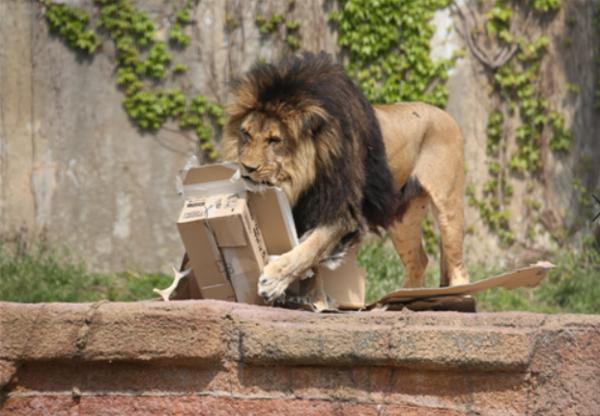 사자들은 커다란 박스를 넘어트리고 물어뜯기도 하며 활발한 모습을 보였다. 박스에 몸을 넣어보는 모습이나 박스 틈에 머리가 끼었는데도 입에 문 먹이를 놓치지 않으려 애쓰는 맹수의 모습이 웃음을 자아내기도 했다. 고양잇과 동물들은 장난치듯 가지고 놀거나 안에서 쉬는 등 유독 박스를 좋아하는 모습을 보인다. 왜 그럴까.