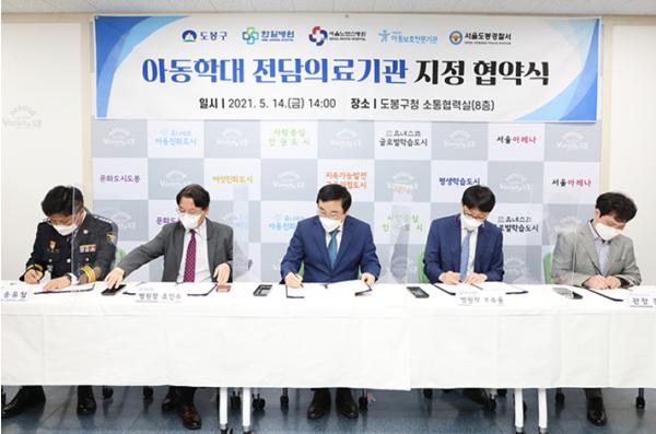 [한국쇼핑몰뉴스, 최영진기자] 도봉구는 5월 14일 구청 소통협력실에서 학대피해 아동의 신속한 의료 서비스 지원을 위해 한일병원, 서울노보스병원 2곳을 아동학대 전담의료기관으로 지정하고 협약식을 진행했다.