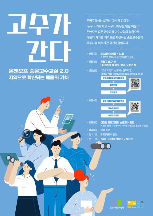 [한국쇼핑몰뉴스, 최영진기자] 은평구와 은평구평생학습관(관장 이창식)은 재능나눔 파견 수업 ‘고수가 간다’ 참여 기관을 6월~11월까지 선착순 모집한다.