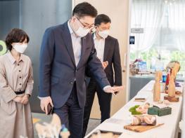 성안로에 자리 잡은 엔젤공방허브센터(연면적 796.40㎡)는 지하에는 다목적실‧랩실‧소회의실이, 지상 1층에는 엔젤공방 및 사회적경제 홍보·전시존이, 지상 2층에는 엔젤공방 공동 교육·체험장‧1인 작업대 등으로 이뤄져 있다.