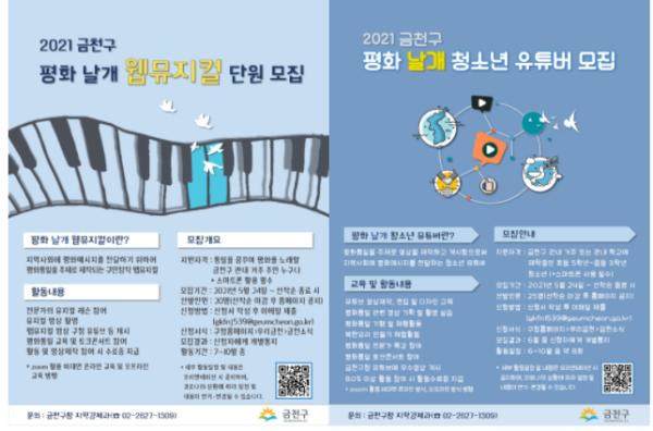 유성훈 금천구청장은 “평화·통일을 염원하는 미래 통일세대의 창의적인 영상 콘텐츠와 구민창작 웹뮤지컬 영상 콘텐츠를 통해 지역사회에 평화의 메시지가 전파되기를 기대한다”고 밝혔다.