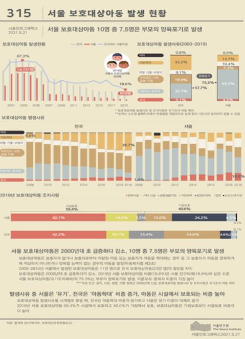 [한국쇼핑몰뉴스, 최영진기자] 서울연구원은 ‘가정위탁의 날’(5월 22일)을 맞아 서울 보호대상아동 발생현황을 주제로 서울인포그래픽스(제315호)를 발행했다.