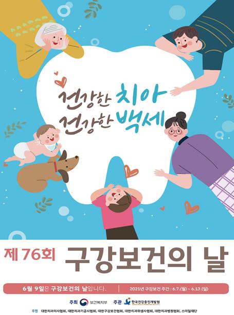 [한국쇼핑몰뉴스, 최영진기자] 보건복지부와 한국건강증진개발원은 6월 9일, 2021년「제76회 구강보건의 날」을 맞이하여 6월 7일부터 13일까지를 기념주간으로 정하고 구강보건에 대한 국민들의 이해와 관심을 높이기 위한 다양한 홍보 활동을 펼친다고 밝혔다.