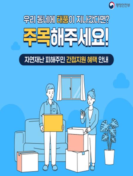 행정안전부는 자연재난 피해자에 대한 지원을 강화하기 위한 간접지원 확대 방안을 제2차 안전정책조정위원회(6.17)에 상정하여 확정했다고 밝혔다.
