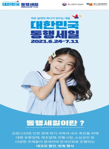 [한국쇼핑몰뉴스, 최영진기자] 중소벤처기업부가 관계부처와 합동으로 6월 24일부터 7월 11일까지 18일간 진행되는 ‘대한민국 동행세일’에 온⋅오프라인 대형 유통사가 모두 동참한다고 밝혔다.