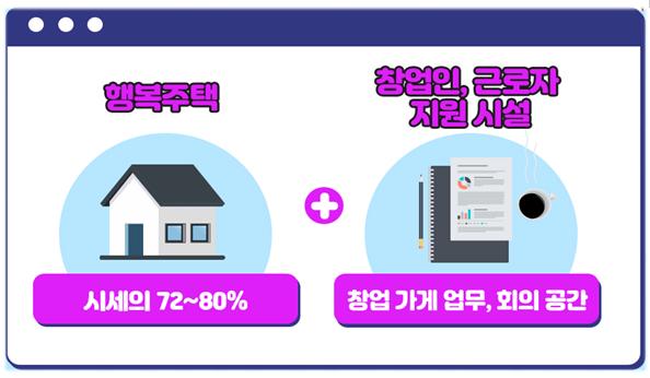 ‘일자리 연계형 지원주택’은 청년 창업인, 산업단지 및 중소기업 근로자 등에게 시세보다 저렴한(시세의 72∼80%) 주택을 공급하여 주거비 부담을 낮추고, 주거+문화+일자리지원 시설이 복합된 모델인 일자리 맞춤형 행복주택으로, 국토교통부는 일자리연계형 지원주택 추진방안(‘18.11)을 수립하여 2018년부터 추진해왔다. 현재(‘20.12월기준)까지 3.8만호 후보지를 선정하였고, 이중 0.9만호를 준공하였으며, 2.9만호를 추진하고 있다