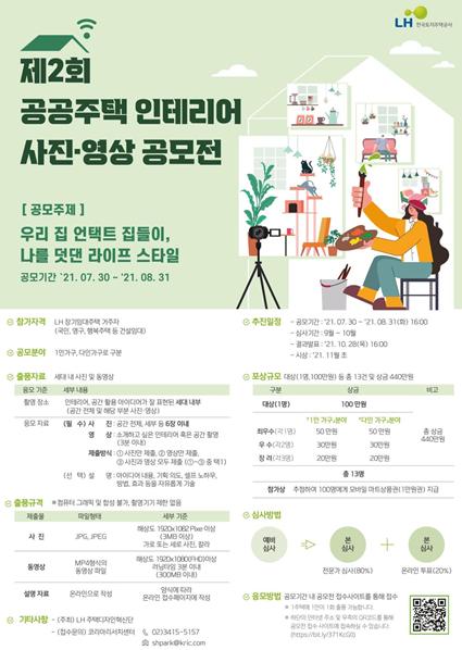 LH 관계자는 “코로나19 장기화로 집에 머무는 시간이 늘어남에 따라 집이라는 공간에 대한 관심이 커지고, 자신을 표현하는 방식으로서 자리 잡고 있는 만큼, 입주민 여러분의 많은 관심과 참여를 기대한다”고 밝혔다.