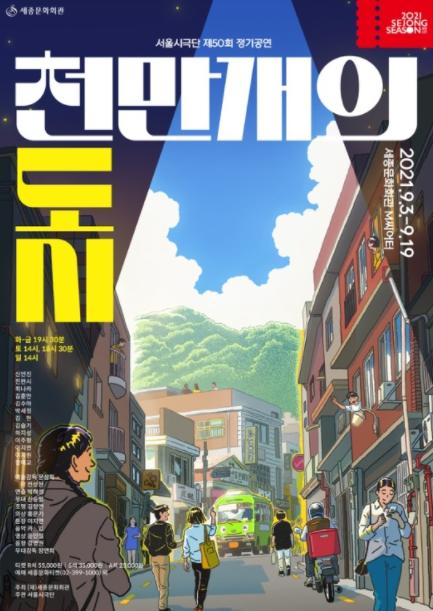 [한국쇼핑몰뉴스, 최영진기자] 세종문화회관 산하 서울시극단(단장 문삼화)이 오는 9월 3일~19일 세종문화회관 M씨어터에서 연극 '천만 개의 도시'를 공연한다.