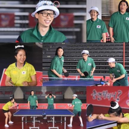 유재석은 고난도 ‘스카이 서브’를 시도하며 ‘유탁구’로 변신하는 듯 보였지만 이내 다른 사람의 공까지 쳐 내며 ‘탁구 구멍(?)’에 등극해 현장을 폭소케 만들었다.
