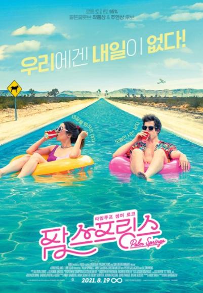 '팜 스프링스'는 결혼식만 100만 번째? 눈 뜨면 항상 똑같은 하루가 시작되는 타임루프 세계관에 갇힌 남녀의 오늘만 사는 썸머 코믹 로맨스로, 미국 온라인 스트리밍 서비스 훌루(Hulu)에서 역대 최다 스트리밍 기록을 세운 화제작이다.