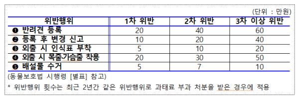 이번 집중단속 기간에는 반려견의 주 이용 장소를 중심으로 반려견 소유자의 준수사항 이행 여부를 점검하고, 위반 시에는 과태료를 부과할 계획이다.