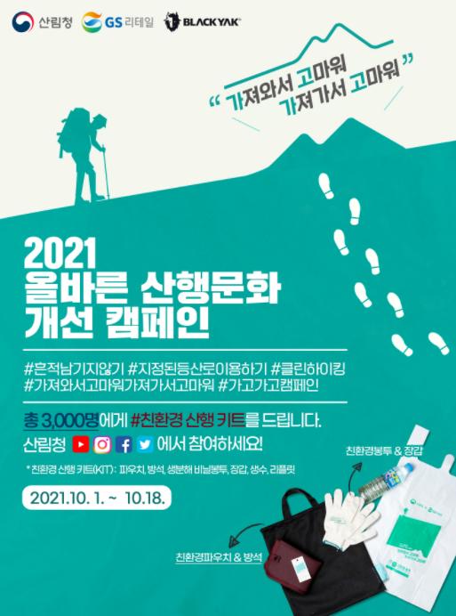 이번 캠페인은 흔적 없이 즐기는 산행문화를 목표로 지에스(GS)리테일, 블랙야크와 협업하여 산림정화 활동, 산행 안전수칙 준수 등 산행 문화 개선에 대한 국민 참여를 유도한다.