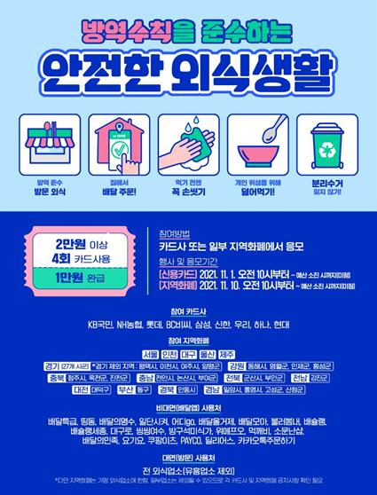 외식 할인 지원은 외식업소(지역화폐는 가맹 외식업소에 한함)를 방문하거나, 배달앱을 통해 주문 결제 시 실적 달성을 확인하여 환급하는 방식으로 진행된다.