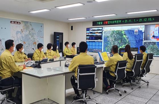 [한국쇼핑몰뉴스, 최영진기자] 동부지방산림청은 2021년 가을철 산불조심기간(11.1.~12.15.)을 맞아 11월 1일 현판식을 갖고 산불방지대책본부를 본격 가동한다고 밝혔다.