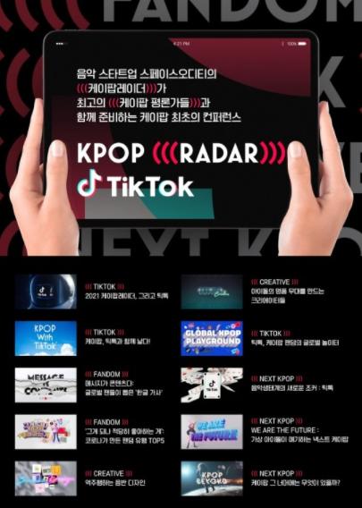 [한국쇼핑몰뉴스, 최영진기자] 음악 스타트업 스페이스오디티 (대표 : 김홍기)가 진행하는 케이팝 최초의 컨퍼런스인 ‘2021 케이팝 (((레이더))) 틱톡'의 10개의 세션 주제와 라인업 총 26명을 공개했다.