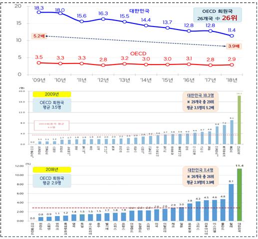 노인 인구 비율이 전체 인구의 16%(52백만명 중 8.1명, ‘20년)에 불과한데도 전체 보행 사망자(1,093명, ’20년) 중 노인이 절반 이상(628명, 57.5%)을 차지하고 있어 개선이 시급한 실정이다.
