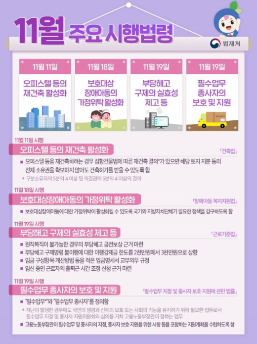 [한국쇼핑몰뉴스, 최영진기자] 11월 주요 시행법령, 이렇게 달라집니다!