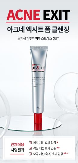 아크네 엑시트 폼클렌징은 식품의약품안전처의 여드름완화에 도움을 주는 기능성 세안제로 등록되어 있다. 아크네 엑시트 폼클렌징에 함유된 살리실릭애씨드(Salicylic Acid)는 모공 속 피지에 직접 작용하며, 산호추출물인 스피큘(spicule)은 세안 시 미세버블이 스피큘의 자극을 감소시켜 여드름 피부에 깊이 작용하도록 한다.