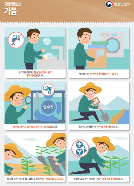 김성중 행정안전부 재난대응정책관은 “중부지역의 적은 강수로 일부지역에 약한 가뭄이 지속되고 있으나, 용수공급은 정상적으로 이루어질 전망이다.”라며, “다만, 내년 1월까지도 평년과 비슷하거나 적은 강수가 전망됨에 따라 각 가정에서도 물 절약에 관심을 갖고 동참해주시기 바란다.”라고 말했다.