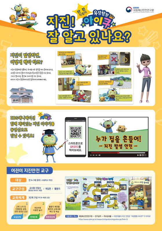 한편, 국립재난안전연구원 지진방재센터(센터장 오금호)는 ‘아이쿠’ 인물 개발사인 ㈜마로 스튜디오(대표 박일호)와 지난 11월 1일 지진재난 안전 교육용 콘텐츠 홍보 효과 향상을 위한 업무 협약(MOU)을 체결한 바 있다.