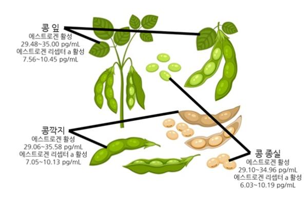 이를 통해 콩깍지 추출물이 에스트로겐 호르몬 활성을 높여 주고, 염증 유발인자(LPS)에 의한 산화질소(NO) 생성을 억제해 항염 활성이 높은 것으로 확인됐다.