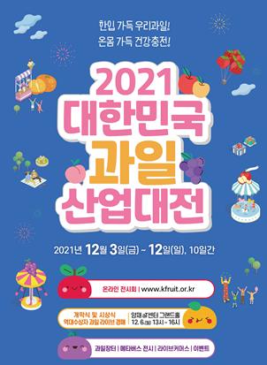 [한국쇼핑몰뉴스, 최영진기자] 농림축산식품부는 한국과수농협연합회 주관으로 2021 대한민국 과일산업대전을 12월 3일부터 12일까지 열흘간 개최한다고 밝혔다.