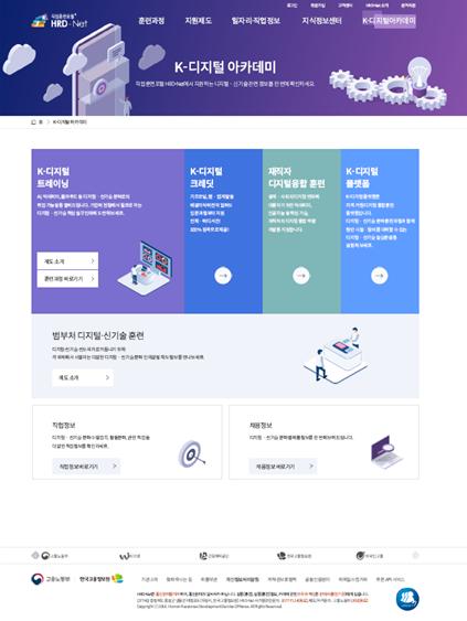 고용노동부와 한국고용정보원은 디지털 신기술 훈련정보 통합 서비스인 K-디지털 아카데미를 직업훈련포털(HRD-Net)에서 12.6.부터 공식 제공한다.