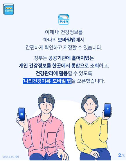 정부는 지난 2월 24일 ?마이 헬스웨이(의료분야 마이데이터) 도입 방안?을 통해 마이 헬스웨이 플랫폼을 활용한 의료분야 마이데이터 생태계를 조성할 계획이라고 발표하였으며, 마이 헬스웨이 플랫폼 구축 전에도 국민이 개인 건강정보의 활용가능성을 실제 피부로 체감할 수 있도록, 공공기관 건강정보를 스마트폰으로 조회?저장?활용할 수 있는 ‘나의건강기록’ 앱 안드로이드 버전을 2월 24일 출시한 바 있다.