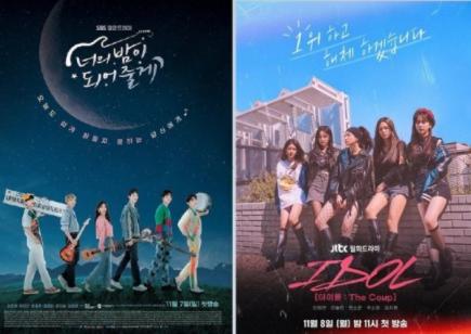 [한국쇼핑몰뉴스, 최영진기자] 현재 방영 중인 SBS '너의 밤이 되어줄게'는 몽유병을 앓고 있는 월드스타 아이돌과 이를 치료해야 하는 주치의의 로맨스를 담고 있는 드라마다. JTBC '아이돌 더 쿱'은 6년차 무명 걸그룹 '코튼캔디'가 겪는 일상의 애환과 위기 등의 내용을 담고 있다.