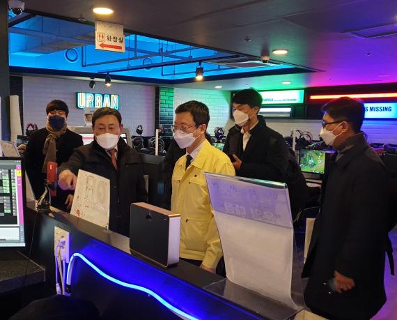 김현환 차관은 12월부터 피시방에 적용하고 있는 백신 접종증명·음성확인제(방역패스) 출입 관리 점검을 시작으로, ▲ 출입자 체온 확인 및 유증상자 출입 제한, ▲ 출입자 명부 작성·관리, ▲ 마스크 착용과 손 소독, ▲ 시설 환기와 사용 피시 소독 등 방역수칙 준수 여부를 세밀하게 살폈다.