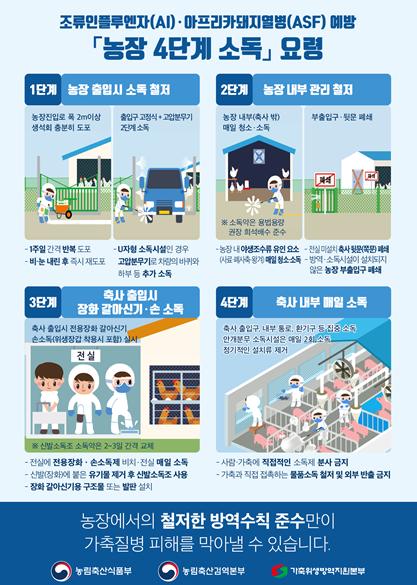중수본은 “사육가금에서 폐사 증가, 산란율·사료섭취량·활동성 저하 등 의심증상을 면밀히 관찰하여 이상이 있을 경우 즉시 방역당국으로 신고할 것”을 당부했다.