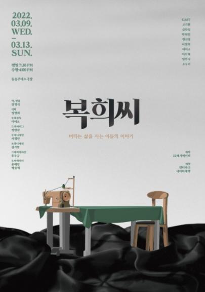 연극 '복희씨'는 3월 9일부터 3월 13일까지 평일 7시 30분, 주말 오후 4시 대학로 동숭무대 소극장에서 공연된다.